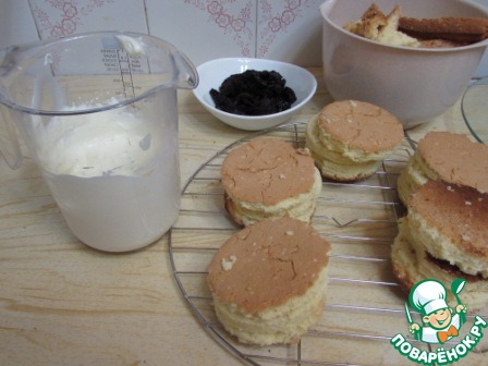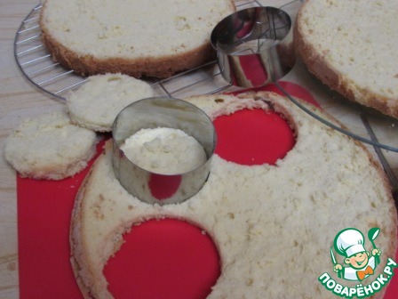 Теперь можно фантазировать с подачей. Я круглой вырубкой вырезала кружочки из коржей.