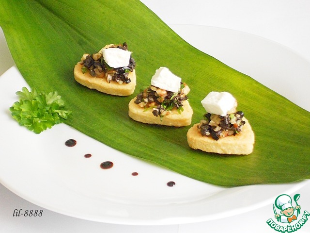 На печенье выкладывать немного овощно-ореховой смеси, а сверху выложить по кубику сыра.