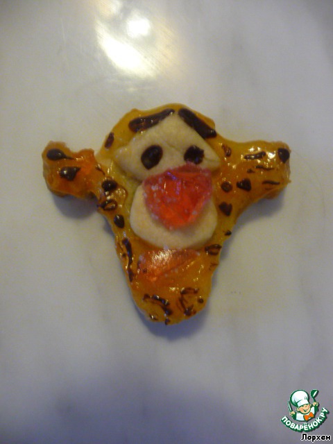 Мармелад оранжевый топим в микроволновке (достаточно 15 сек, шоколад - на водяной бане и разрисовываем мордашку Тигры. Из красного мармелада делаем нос - он у Тигры такой огромный :)И Также хвост!