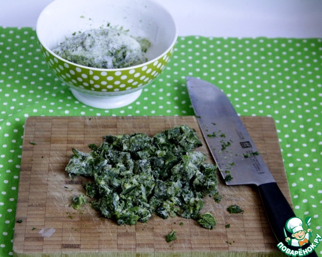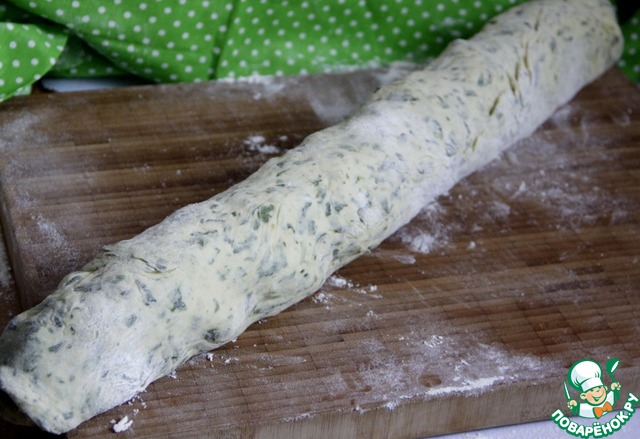 На доске, присыпаной мукой раскатать тесто в прямоугольник, толщиной в 1 см.