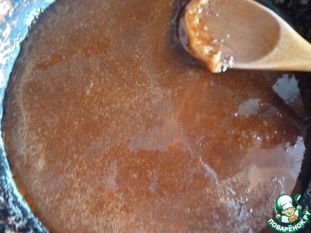 Огонь медленный, постоянно помешиваем до полного растворения сахара