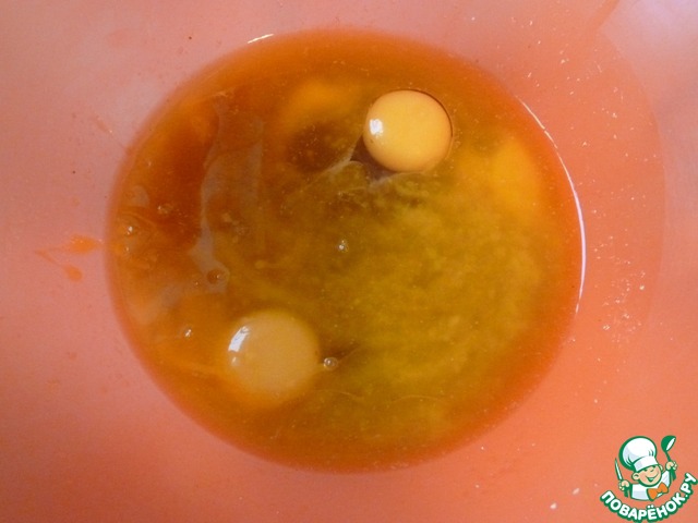 В полностью остывший пережженный сахар добавляем 2 желтка и 1 целое яйцо.