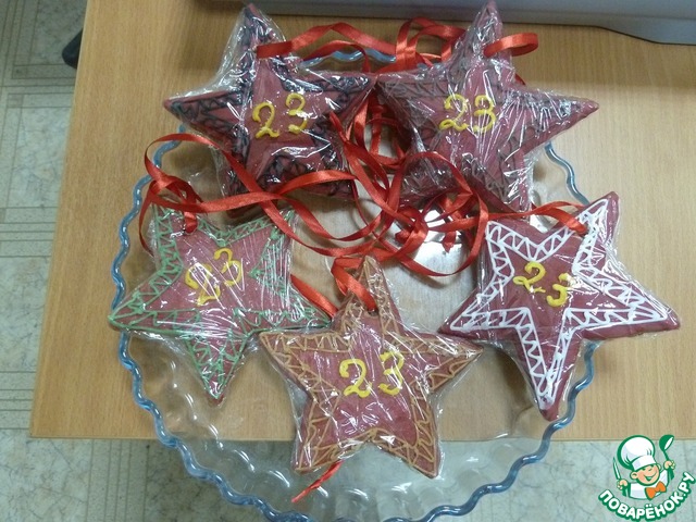 Отправляем в хорошо разогретую духовку, на верхнюю полку, температура примерно 180 градусов (у меня старая духовка, точно не скажу) на 8-10 мин. Ориентируйтесь на свою духовку, не передержите. Тесто хорошо увеличится в объеме, плотно не выкладывайте. Вот такие звезды я испекла на 23 февраля коллегам по работе.