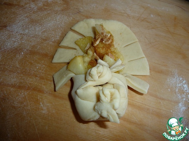 Каждый кусочек защипнуть к центру и сделать небольшой шарик.
