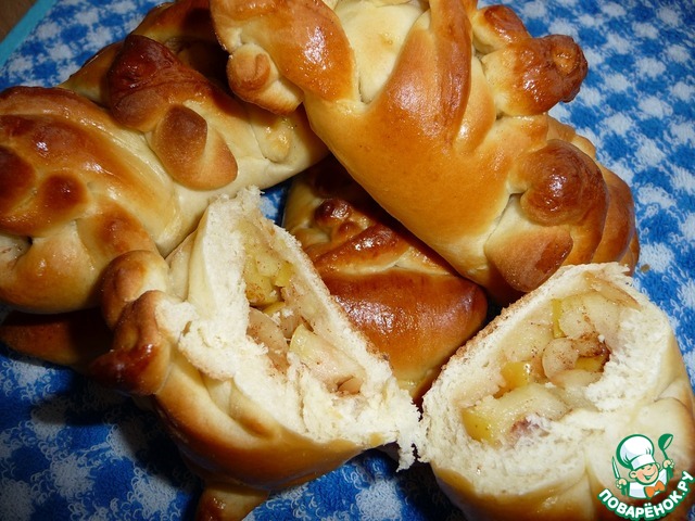 | Нежное дрожжевое тесто, сладкая яблочная начинка с миндалем. Очень вкусно! Попробуйте! Рецепт вдиела в инете. Возможно, и на сайте есть подобное, но в разделе плетенок я не нашла. |