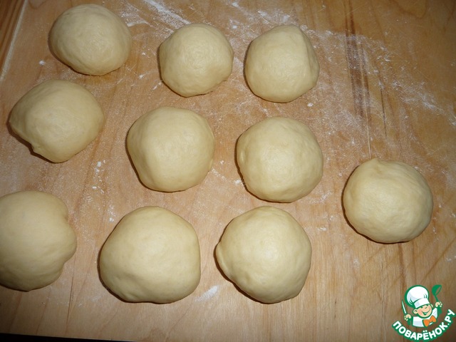 Скатать в шар и разделить на 10 частей (у меня по 89 г).