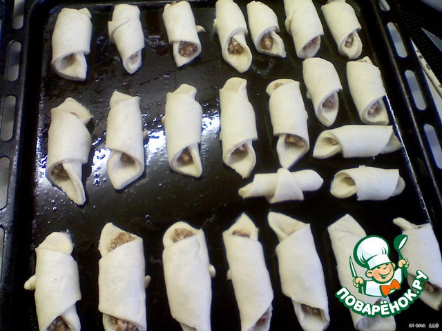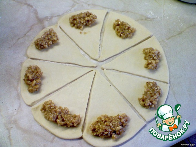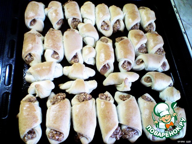 | Рецепт взяла на одном кулинарном сайте. Вкусные рогалики с нежной начинкой. |