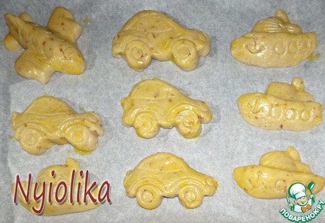 Аккуратно вытряхиваем (или вынимаем, зависит от формы) выкладываем на противень, и смазываем желтком. Зубочисткой прорисовываем детали. В духовку при 180 градусах на 15-20 минут. Растут активно, ГЛАВНОЕ НЕ ПЕРЕСУШИТЬ.