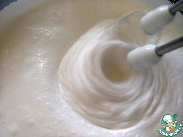 После этого добавить гашеную уксусом соду (соды 1/2 ч. л. и уксуса добавить до полной чайной ложки)