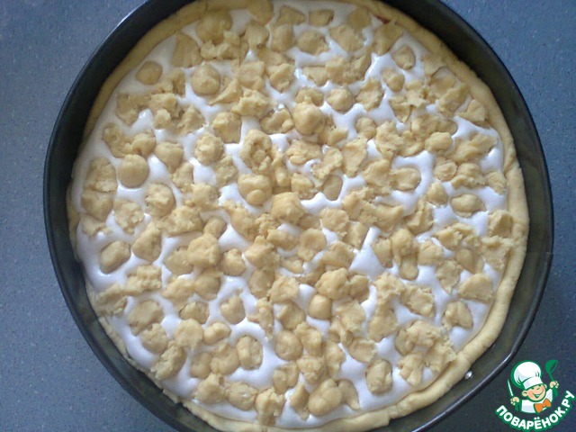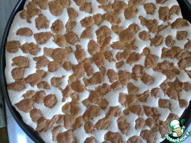 Оставшееся тесто разбросать сверху на белки маленькими кусочками