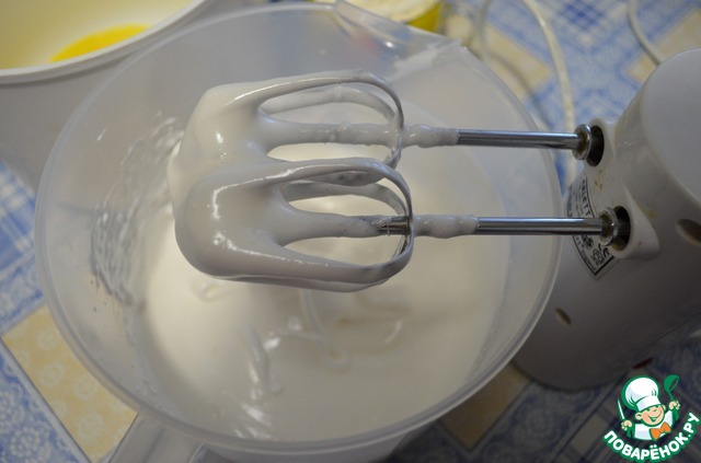 Взбиваем белки в крепкую пену.