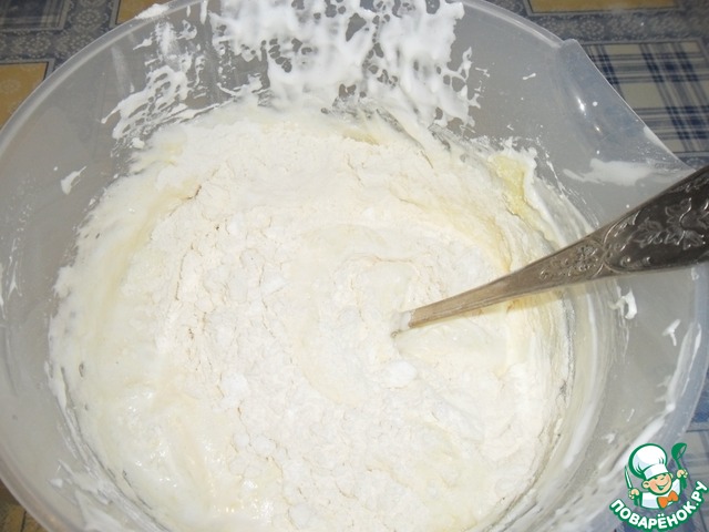 Постепенно соединяем все ингредиенты и замешиваем тесто.