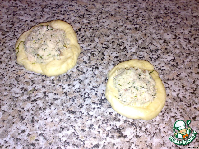 Из шариков теста делаю лепешечки и на них ложкой выкладываю начинку и по кусочку масла сливочного, чтобы сочнее было.