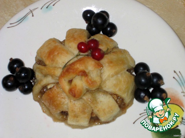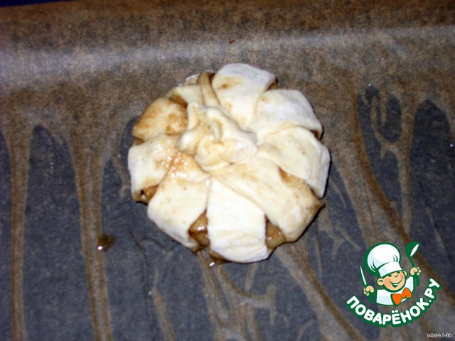 | Сочная груша и яблочко с корицей и сахаром в обрамлении слоеного теста и маленького кусочка кураги... Вариант обрамления фруктов тестом также есть у Леночки (elena_110 ). |