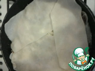Сверху укладываем листы. Заливаем соусом и сверху посыпаем сыром, зеленью. Выпекаем 30-40 мин.