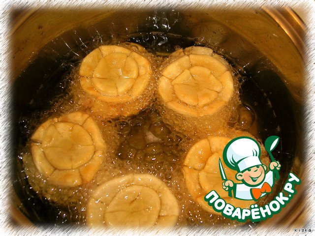 Разделанное тесто жарить в горячем масле.