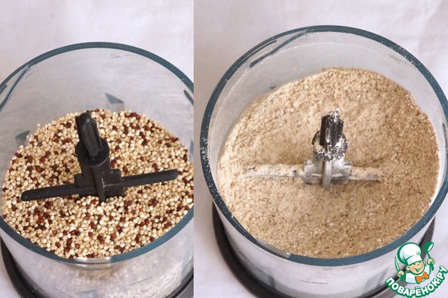 Для приготовления печенья из Киноа сделаем муку. Промыть крупу и как следует просушить. Смолоть, я использовала блендер, все прекрасно получилось. а какой аромат у этой муки... ммм...