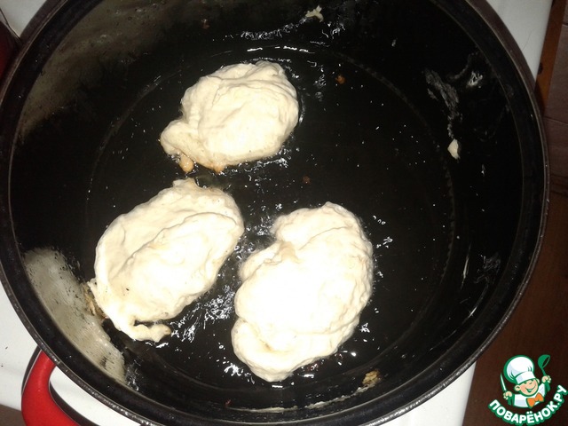 Берём кастрюлю поглубже, наливаем подсолнечного масла примерно на палец толщиной. Увлажненной столовой ложкой достаём немного теста (тесто не надо перемешивать) и опускаем в горячее масло. Жарим на среднем огне до образования золотистой корочки. (Во время жарки необходимо добавлять масло, так как тесто его быстро впитывает.) Затем переворачиваем наши уштипцы и жарим их до готовности, т. е. до золотистой корочки.