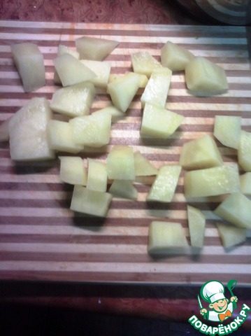 Картофель почистить, нарезать мелкими кубиками, положить в кастрюлю.