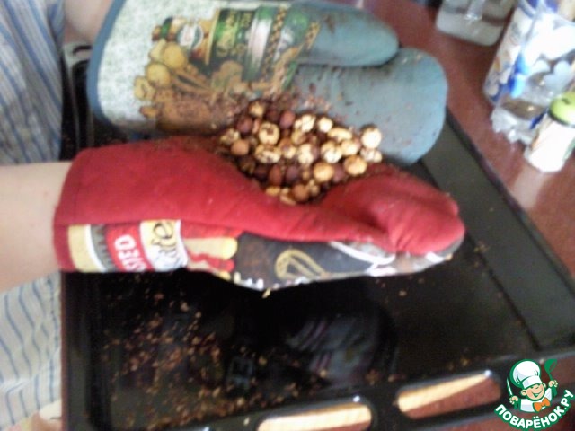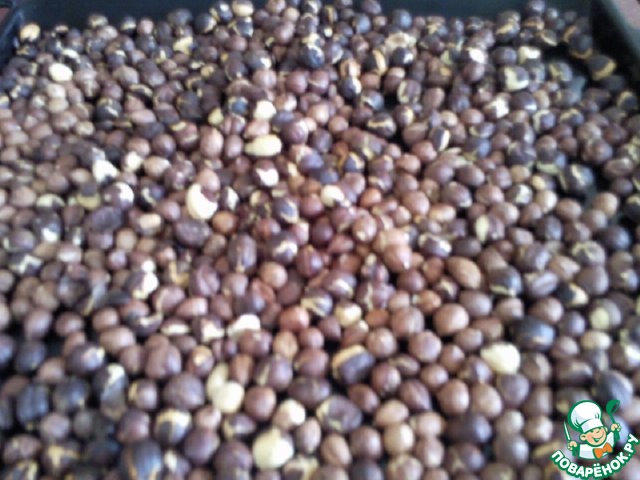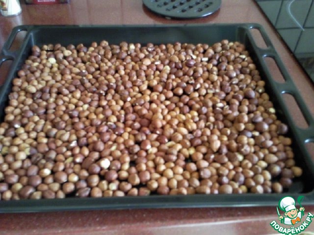 Пожарить орехи. Для этого высыпать их на противень и поставить в духовку при температуре 200 градусов на 10-15 минут