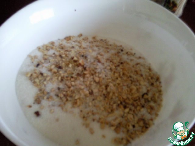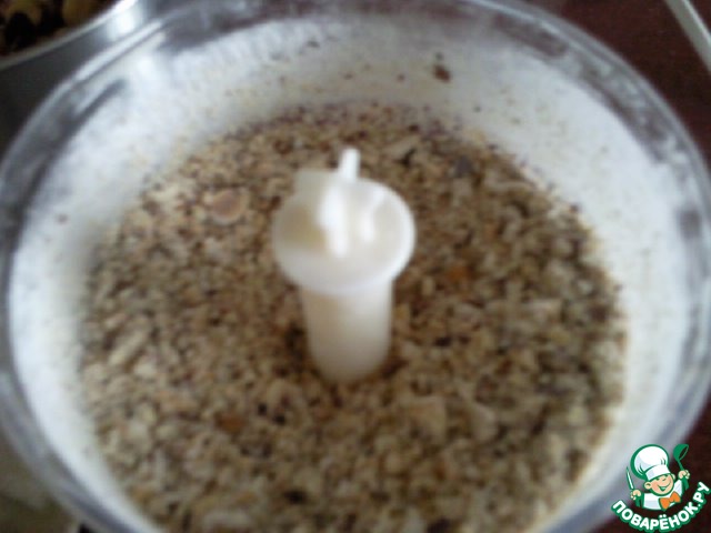 Перемешать измельченные орехи со стаканом сахара ( 250 г сахара), добавить измельченный кардамон и ваниль
