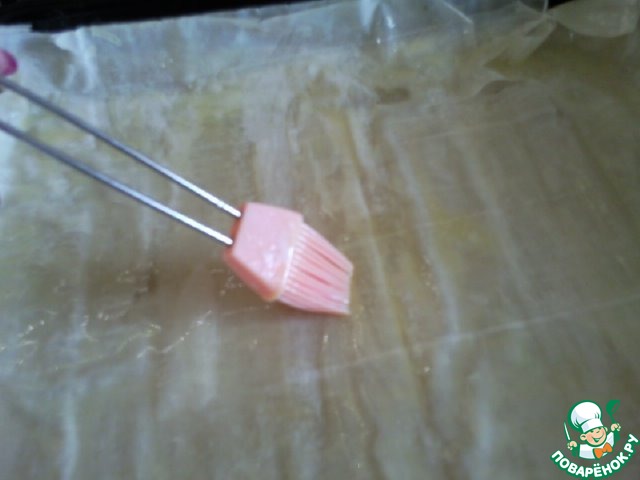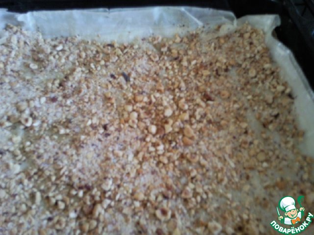 Через каждые 3 листа теста посыпать сахарно-ореховой начинкой