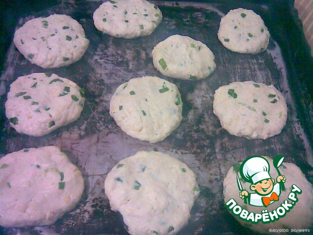 Смазать противень растительным маслом. Сделать лепёшки и разложить их на расстоянии 3 см друг от друга.