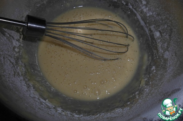 2. Смешиваем муку, сахар, соль и разрыхлитель. Затем добавляем два яйца и тщательно все взбиваем в однородную массу.