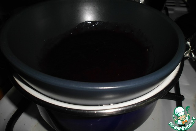 4. Пока выпекается корж, на водяной бане разогреваем джем. К слову, джем может быть любой, кому, что нравится.