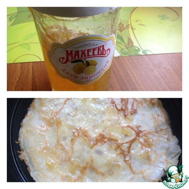 Далее блин и джем лимонный. И так по очередно пока не кончатся блины