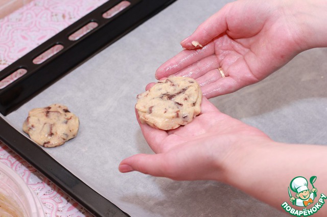 Противень застилаем бумагой для выпечки, смазываем ее сливочным маслом. Руками формируем печеньки