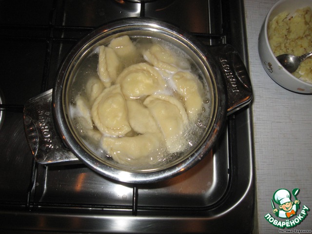 Отварить в кипящей подсоленной воде и через 8 минут вареники готовы вас удивлять.
