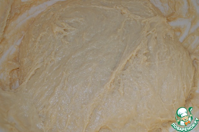 Когда опара подойдет, добавить соль, желтки растертые с сахаром и масло, перемешать. Ввести белки и оставшуюся муку. Вымесить, я сначала вымешиваю миксером, а потом уже долго и тщательно руками, как говорится ударяю 300 раз чтобы потом 300 раз гости похвалили. Тесто должно хорошо отставать от стенок и рук. Поставить подходить в теплое место.