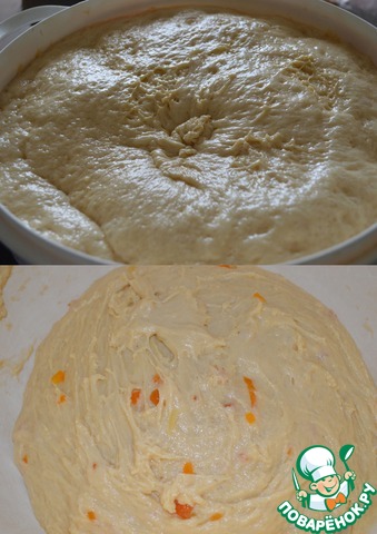 Когда тесто увеличиться в двое положить в него изюм, цедру, цукаты, порубленные орехи и кардамон, хорошо перемешать.