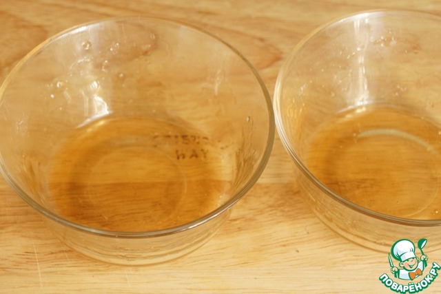 Подготовим огнеупорные формочки и распределим горячую карамель по дну и стенкам формочек.