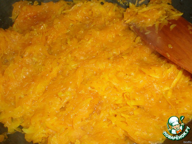 Тыкву потереть и потушить со сливочным маслом и сахаром на сковородке.