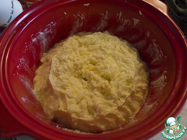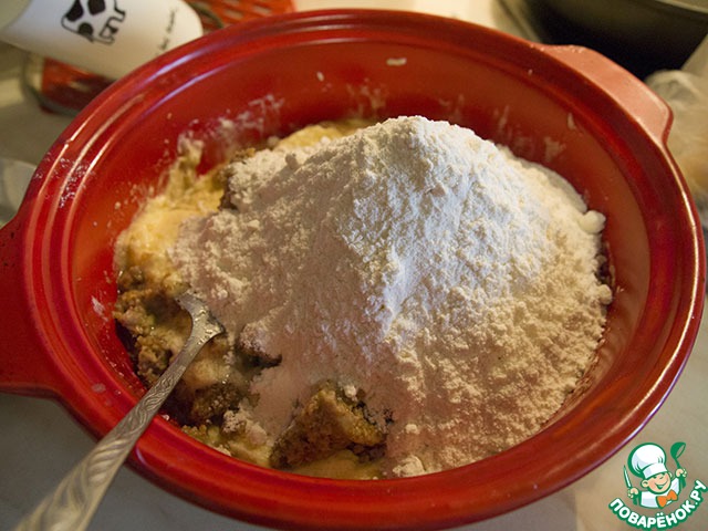 Тесто должно получиться густым и вязким. Ложкой перемешивается трудно. Если тесто недостаточно густое, добавьте оставшуюся муку (половину стакана). Если получилось слишком густое, то добавьте немного молока.