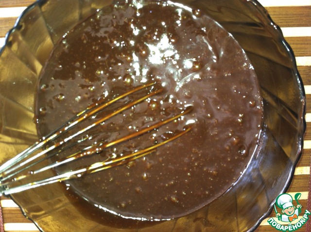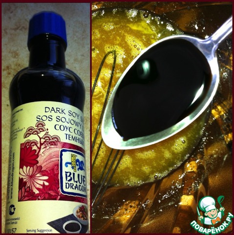 В рецепте присутствовала соль, я заменила ее на 1 неполную десертную ложку темного соевого соуса отBlue Dragon, он прекрасно оттенил вкус шоко. Перемешать.