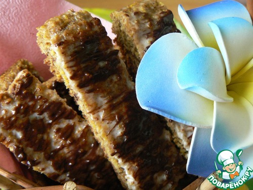 При желании можно полить глазурью из столовой ложки кефира и чайной ложки сахарной пудры, а сверху нанести кисточкой тонкий слой шоколадной глазури. У меня по рецепту Http://www.povarenok .ru/recipes/show/588 34/ на треть порции