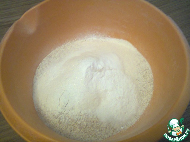 Смешать сухие и жидкие ингредиенты и замесить мягкое тесто.