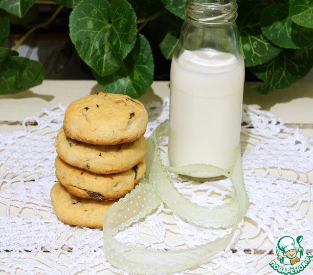 Выпекать при температуре 200 градусов в течение 15-20 минут. Если выпекать 15 минут - печенье остается мягким, если 20- минут, печенье получается более хрустящим и рассыпчатым.