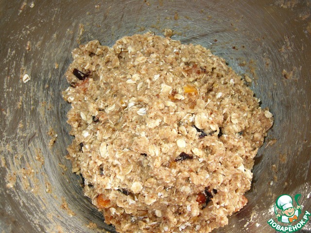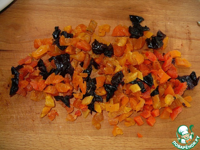 Добавить мелко нарезанные курагу и чернослив и снова хорошо перемешать.