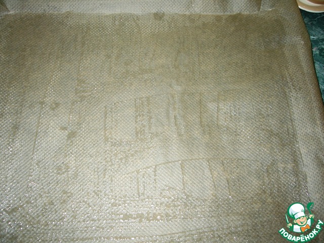 Противень застелить бумагой для выпечки и смазать её растительным маслом.