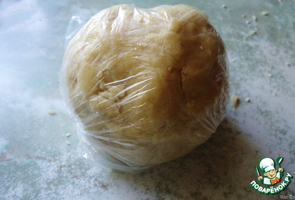 При необходимости добавляем 2 ст.л. ледяной воды или чуть больше, чтобы тесто не крошилось. формируем шар и отправляем в холодильник на 15-20 минут.