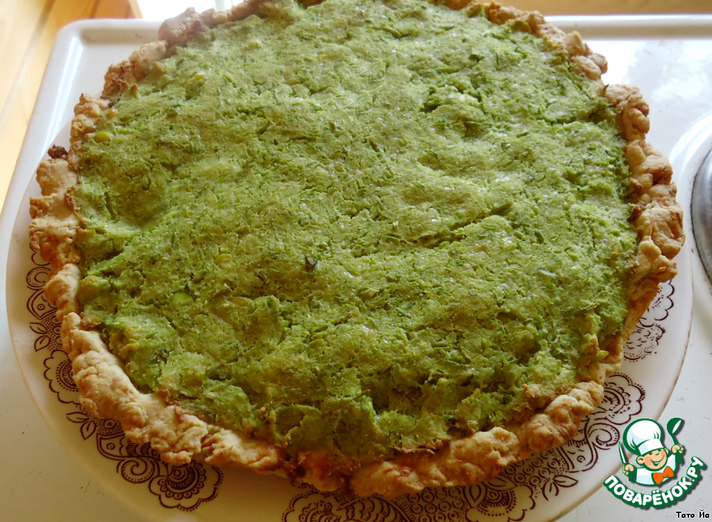 | Лето, свежий зеленый горошек, что же из него приготовить помимо известных нам блюд? Приглашаю испробовать интересный открытый пирог с "гороховой" начинкой) Вкус необычный, но моей семье пришелся по вкусу) |