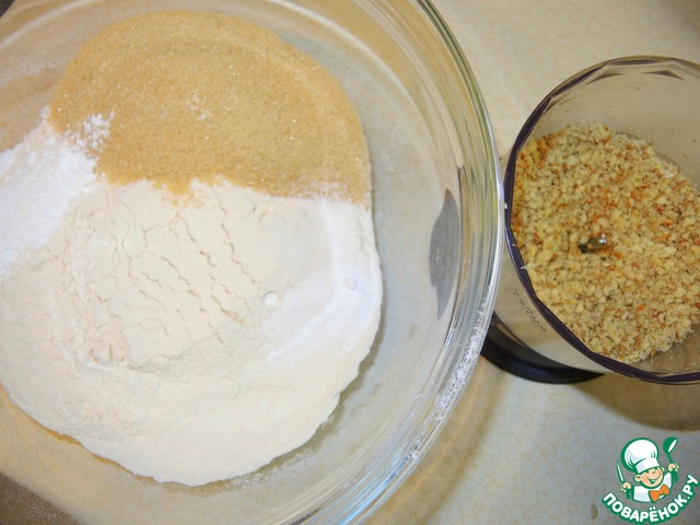 В другой емкости смешать все сухие ингредиенты: муку, тростниковый сахар, соль, соду и разрыхлитель.