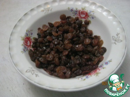 Изюм промыть. Если мы готовим только для взрослых добавте в изюм 2 столовые ложки красного вина.