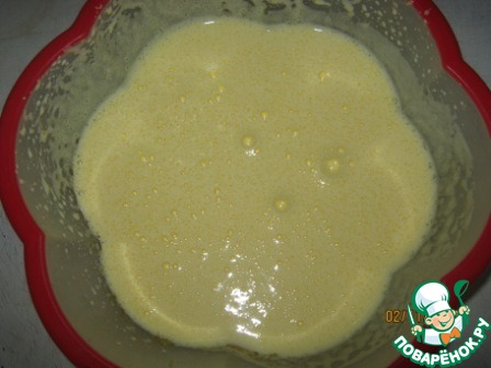 Предварительно включаем духовку и готовим форму (смазываем маслом и посыпаем мукой или манкой). Яйца взбить с сахаром до состояния густой сметаны, это примерно 5 минут