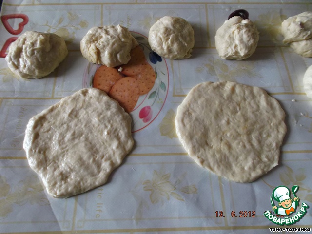 Рабочую поверхность, скалку и руки смазать раст. маслом. Тесто разделить на 8-10 шариков, каждый шарик раскатать в тонкую лепёшку.