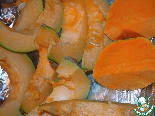 Тыкву нарезаю кусками, смазываю маслом растительным и в духовку до мягкости (минут на 45). Срезаю корки и убираю семена и волокна. Мякоть превращаю в пюре при помощи блендера.